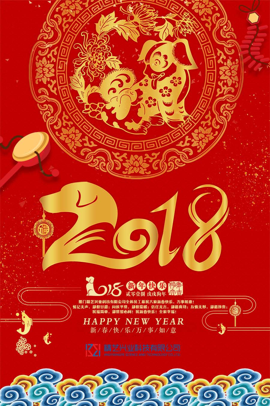 金雞鳴啼辭舊歲,玉犬搖尾迎新年。辭舊迎新,歡度新年。這一刻,五湖四海人聲鼎沸歡聲雷動那一瞬,精藝興業從廈門鷺島捎來如意吉祥幸福安康!