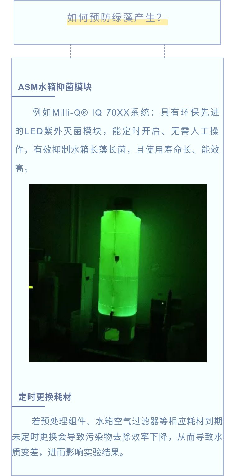 水箱是實驗室純水設備中的重要組成部分,出現綠藻會直接導致水質變差,進而帶來影響實驗結果的風險。