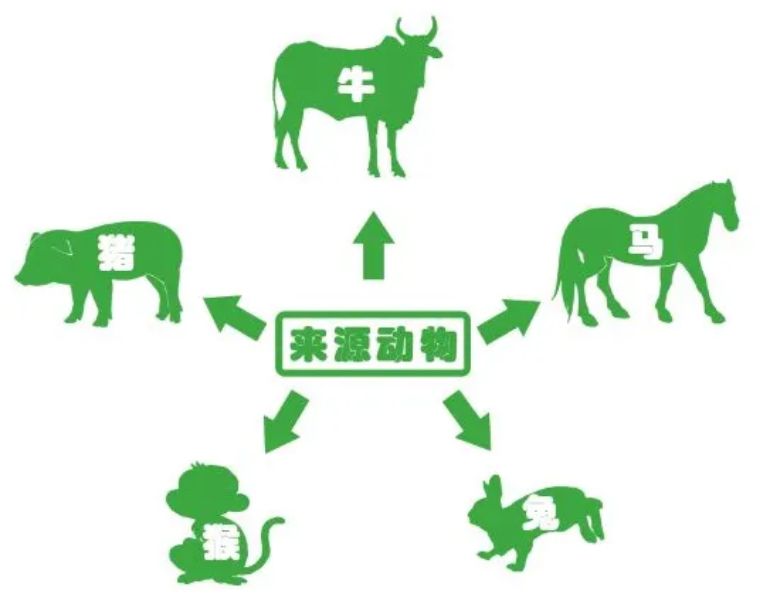 常見的血清供體動(dòng)物,主要有牛、馬、豬、猴、兔等