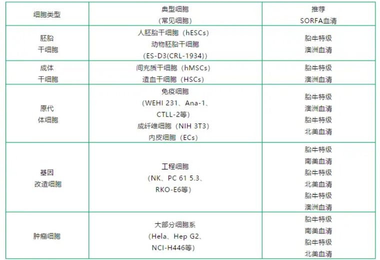 不同產(chǎn)地血清,適用于不同細(xì)胞,簡(jiǎn)單分類如下: