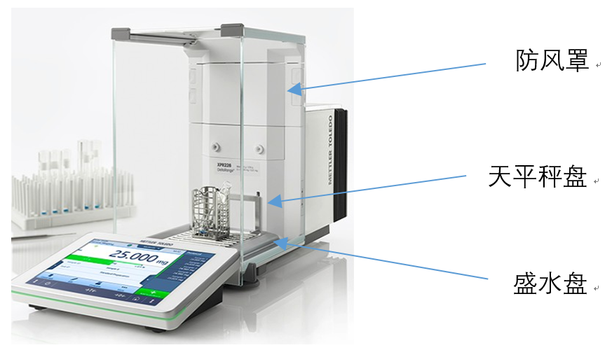 MT天平種類較多,但基本結構都是由稱量室/秤盤/顯示屏/防風罩(部分天平未配置)幾大組件構成。